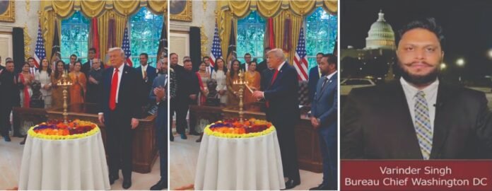 ਵਾਸ਼ਿੰਗਟਨ : ਅਮਰੀਕੀ ਰਾਸ਼ਟਰਪਤੀ ਡੋਨਲਡ ਟਰੰਪ ਨੇ ਮੰਗਲਵਾਰ ਨੂੰ ਵਹਾਈਟ ਹਾਊਸ ਵਿੱਚ ਦੀਵਾਲੀ ਦੇ ਜਸ਼ਨਾਂ ਵਿੱਚ ਹਿੱਸਾ ਲਿਆ। ਉਨ੍ਹਾਂ ਭਾਰਤ ਦੇ ਲੋਕਾਂ ਅਤੇ ਭਾਰਤੀ-ਅਮਰੀਕੀਆਂ ਨੂੰ ਦੀਵਾਲੀ ਦੇ ਤਿਓਹਾਰ ਦੀਆਂ ਨਿੱਘੀਆਂ ਸ਼ੁਭਕਾਮਨਾਵਾਂ ਦਿੱਤੀਆਂ।